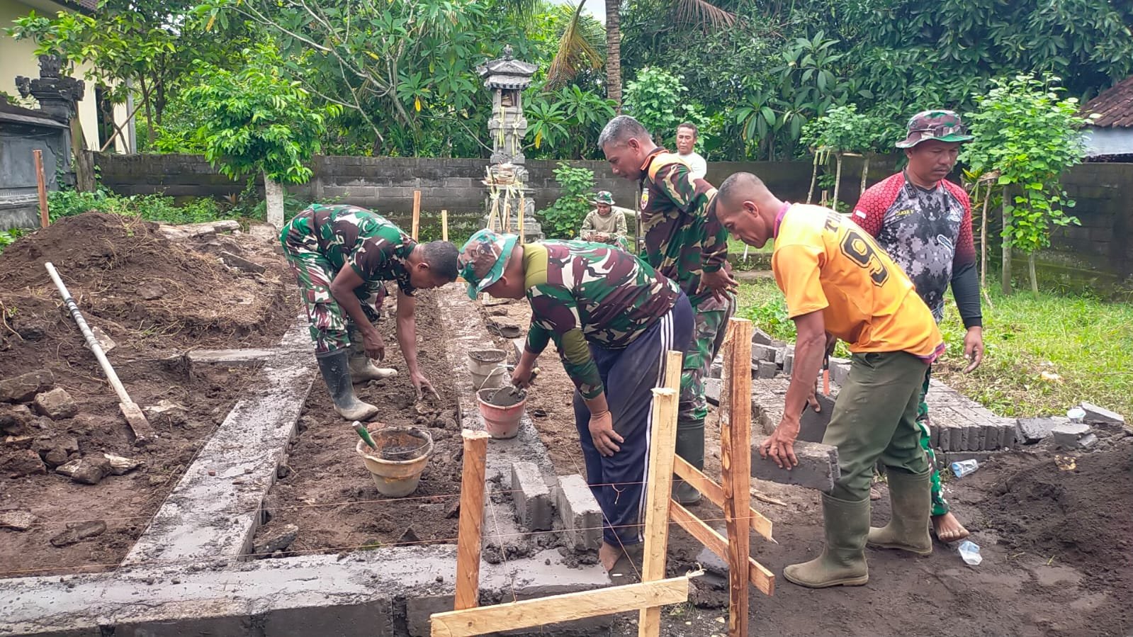 Pada Rabu (21/01/2026), sejumlah prajurit terpilih dari jajaran Kodim 1617/Jembrana diterjunkan langsung ke Banjar Yeh Buah, Desa Penyaringan, Kecamatan Mendoyo. Fokus utama hari ini adalah memulai pembangunan rumah milik Bapak Dewa Putu Dika yang kondisinya memerlukan bantuan perbaikan.