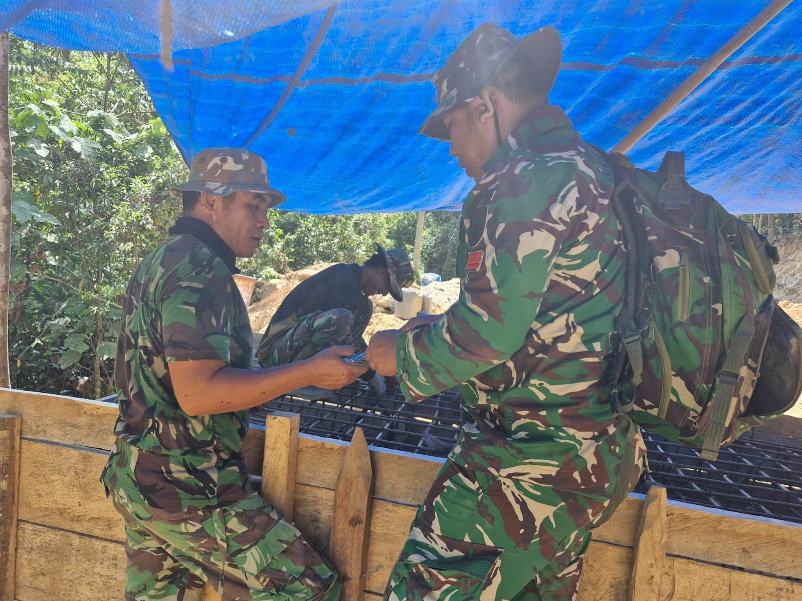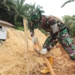 Pada salah satu fokus kegiatan fisik tambahan, yakni program perehaban Rumah Tidak Layak Huni (RTLH), anggota Satuan Tugas (Satgas) TMMD bahu membahu bersama warga setempat mulai aktif melaksanakan pemasangan dinding pada hunian milik Jailani, Sabtu (10/05).