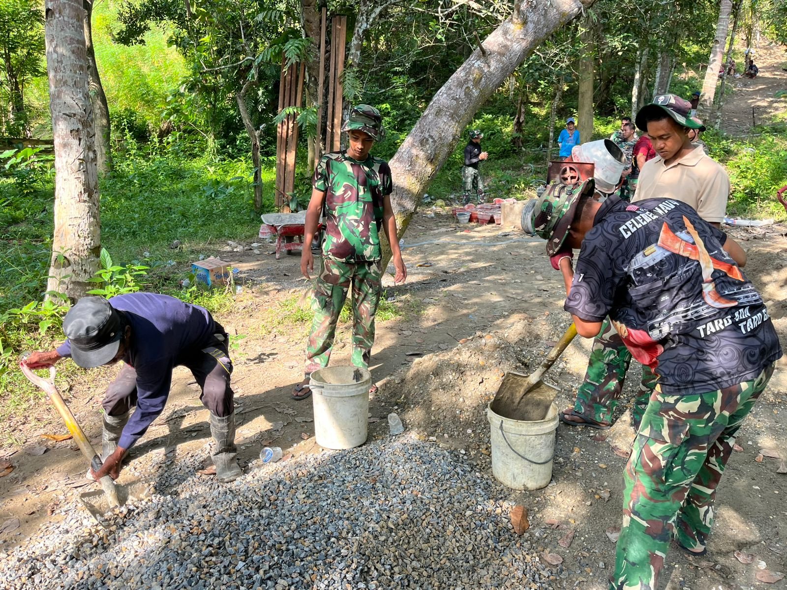 Personel TNI bersama masyarakat setempat bahu-membahu memastikan setiap tahapan berjalan sesuai rencana. Kekompakan di lapangan menjadi kunci agar target penyelesaian dapat tercapai tepat waktu.