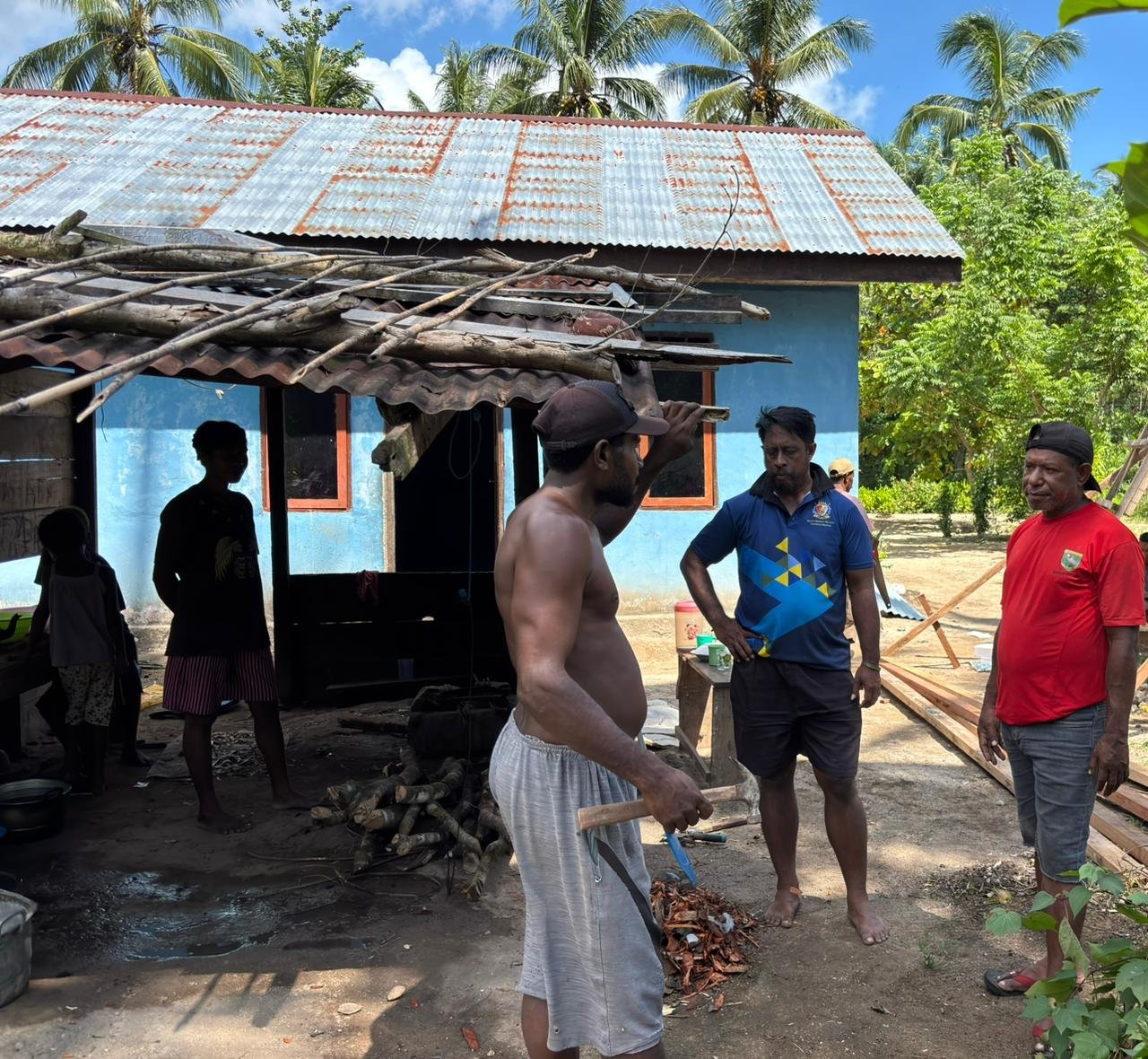 Anggota TNI tampak menyatu dengan warga dalam melaksanakan berbagai pekerjaan. Warga dengan antusias membantu kegiatan sebagai bentuk dukungan terhadap pembangunan di kampung mereka.