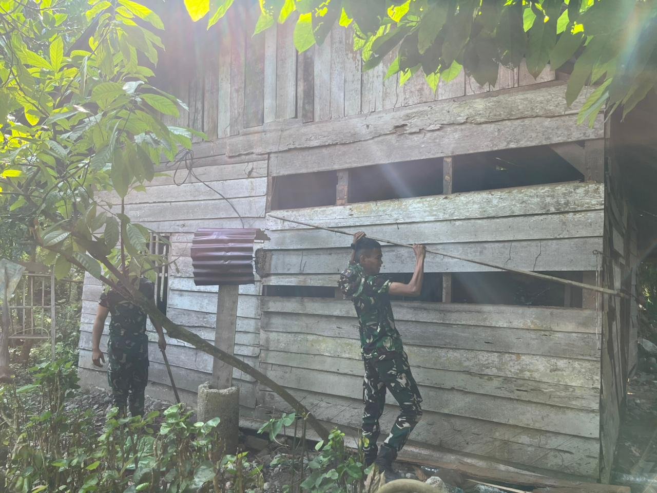 Usai menyelesaikan pekerjaan sasaran fisik, para personel memanfaatkan waktu sore hari untuk berinteraksi dan bermain bersama anak-anak yang tengah mandi di sungai. Kegiatan ini menjadi momen santai yang memperlihatkan kedekatan antara TNI dan masyarakat, khususnya generasi muda.