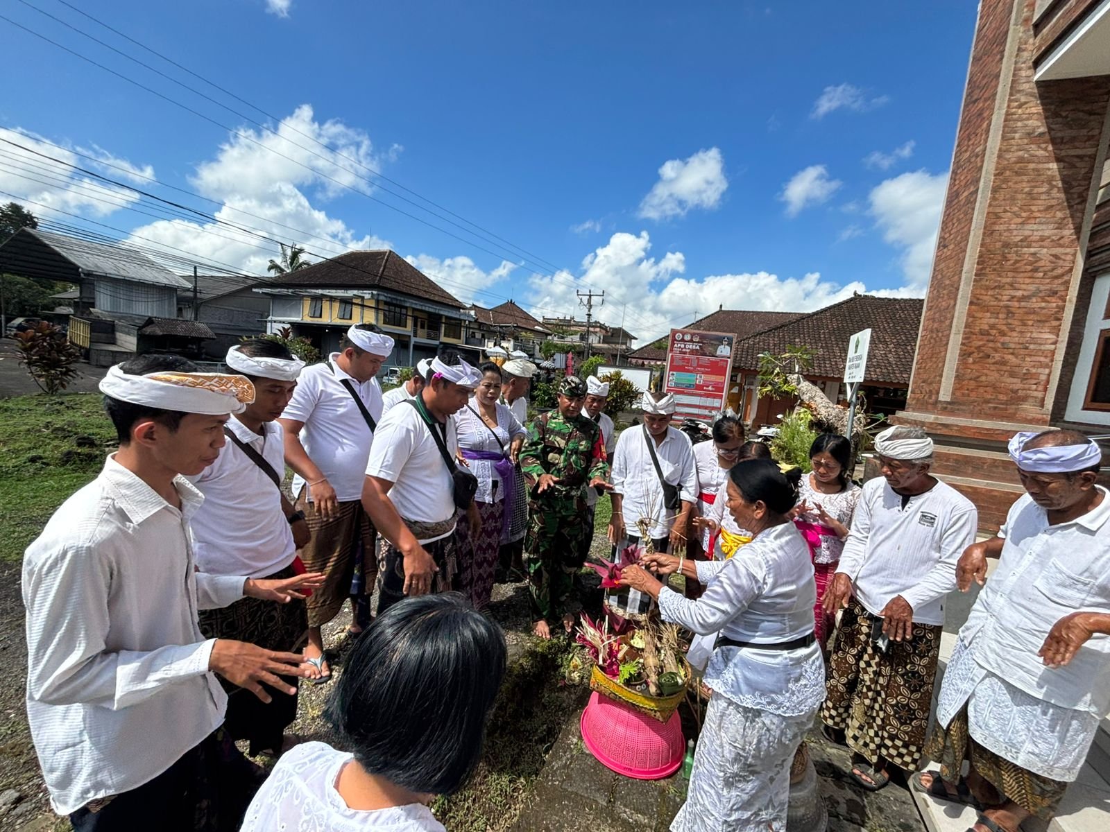 BerandaKODIMMomentum Saraswati, Babinsa Jegu Bersinergi dengan Staf Desa dalam Persembahyangan Bersama