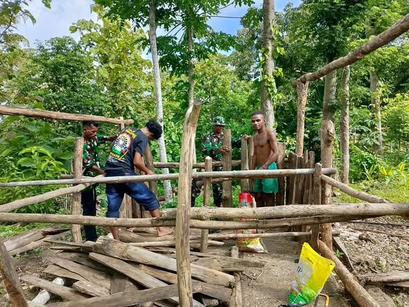 Mudahkan Dalam Pengawasan, Satgaster Pos Halibete 2 Bantu Buat Kandang Ternak Warga