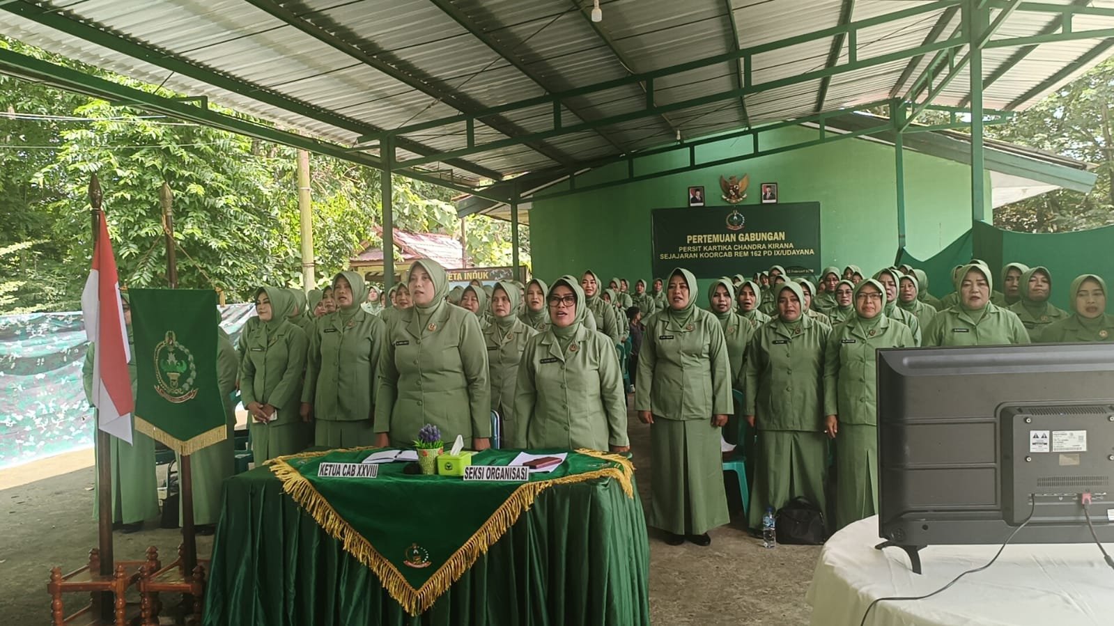 Dompu,NTB – Persit Kartika Chandra Kirana (KCK) Cabang XXVIII Dim 1614/Dompu mengikuti kegiatan Video Conference (Vicon) Zoom Pertemuan Gabungan Persit KCK sejajaran Koorcab Rem 162 PD IX/UDY, Kamis (12/2) Kegiatan yang berlangsung di Makodim 1614/Dompu, Jln. Ahmad Yani, Kelurahan Dorotangga, Kecamatan Dompu, Kabupaten Dompu tersebut dihadiri sekitar 150 peserta.