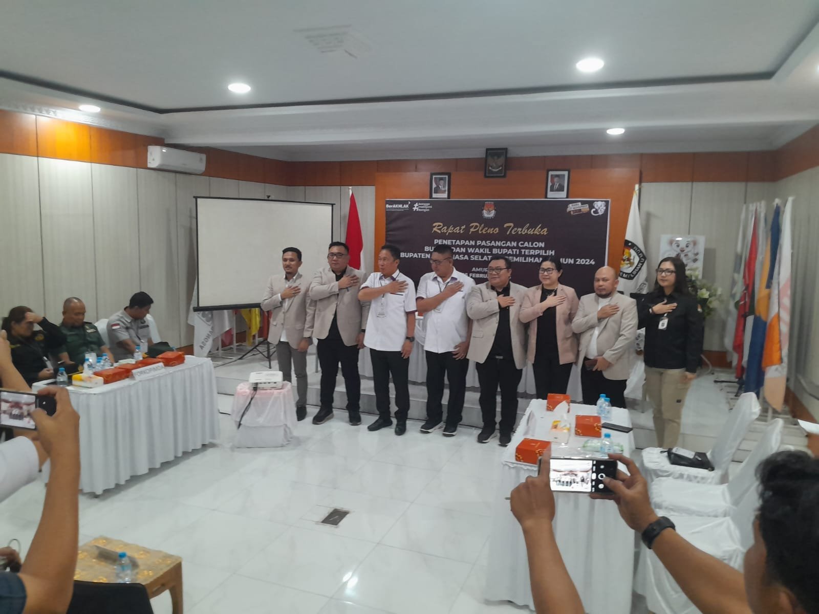 Setelah Pembacaan dan Penandatanganan Berita Acara, Ketua KPU membacakan Penetapan Bupati dan Wakil Bupati Terpilih pada Pilkada 2024 yakni Pasangan Franky D Wongkar SH dan Brigjen TNI (Purn) Theodorus Kawatu S.I.P, seperti tertuang dalam Keputusan KPU Minahasa Selatan Nomor 7 Tahun 2025 Tanggal 05 Februari 2025.