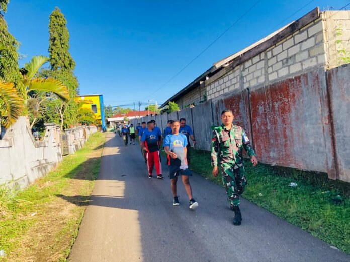 Dengan penuh semangat dan kebersamaan, para prajurit terlihat antusias mengikuti rute jalan santai sambil menikmati udara pagi yang sejuk.