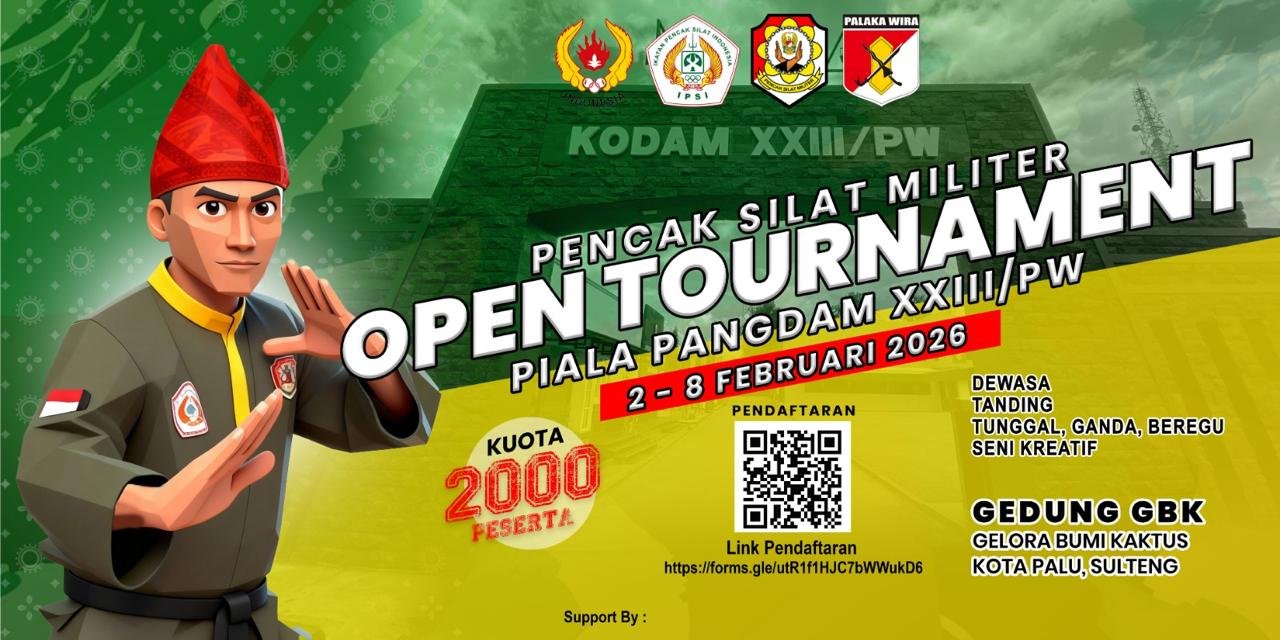 Untuk memastikan partisipasi maksimal, panitia pelaksana telah mendistribusikan undangan resmi kepada seluruh Kodam di Indonesia. Kejuaraan Pencak Silat Militer Open Tournament Piala Pangdam XXIII/Palaka Wira dijadwalkan berlangsung di GOR Gelora Bumi Kaktus, Kota Palu, pada 2 hingga 8 Februari 2026.