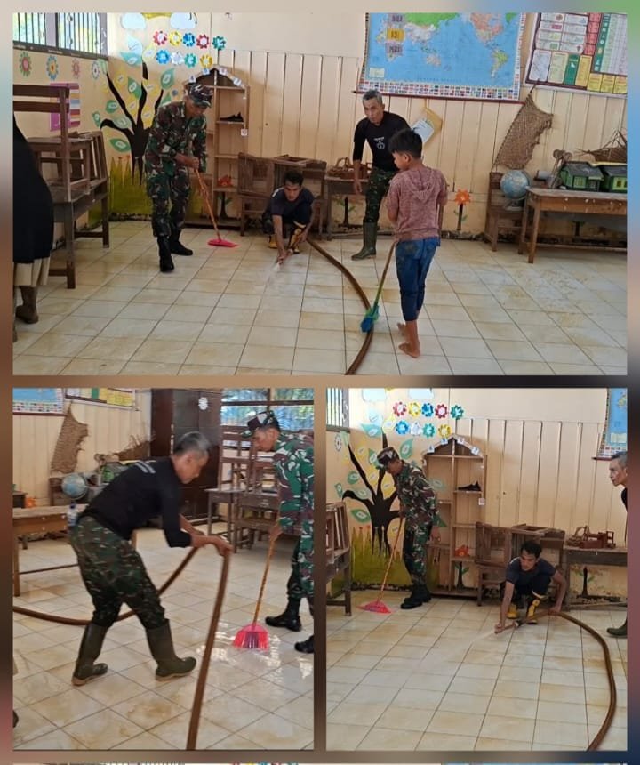 “Hari ini kami mengerahkan personel untuk membantu pembersihan sekolah. Kami berharap setelah pembersihan ini, sekolah dapat kembali difungsikan dan anak-anak dapat belajar dengan normal,” ungkap Serma Tejo Woryanto.