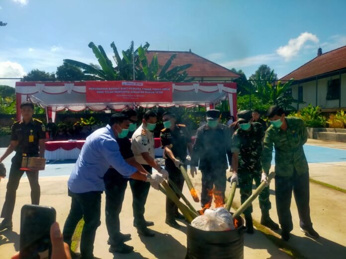 Kegiatan pemusnahan barang bukti ini merupakan tindak perkara pidana yang telah mempunyai kekuatan hukum tetap, dimana kegiatan ini merupakan salah satu tugas jaksa dalam melaksanakan putusan pengadilan. Pemusnahan barang bukti yang telah mempunyai hukum tetap yang akan dilaksanakan hari ini berasal dari 16 perkara tindak pidana yang terdiri dari tindak pidana Narkotika, pencurian, pengancaman KDRT pemerkosaan dan lain-lain,”imbuhnya.