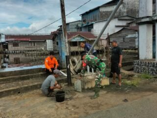 Lamandau – Sebelum memulai rangkaian kegiatan harian dalam program TNI Manunggal Membangun Desa (TMMD) Reguler ke-125, Pasi Ter Kodim 1017/Lamandau Kapten Inf Eko Yunianto mengambil apel pagi di halaman Kantor Desa Batu Kotam, Sabtu(26/07/25).