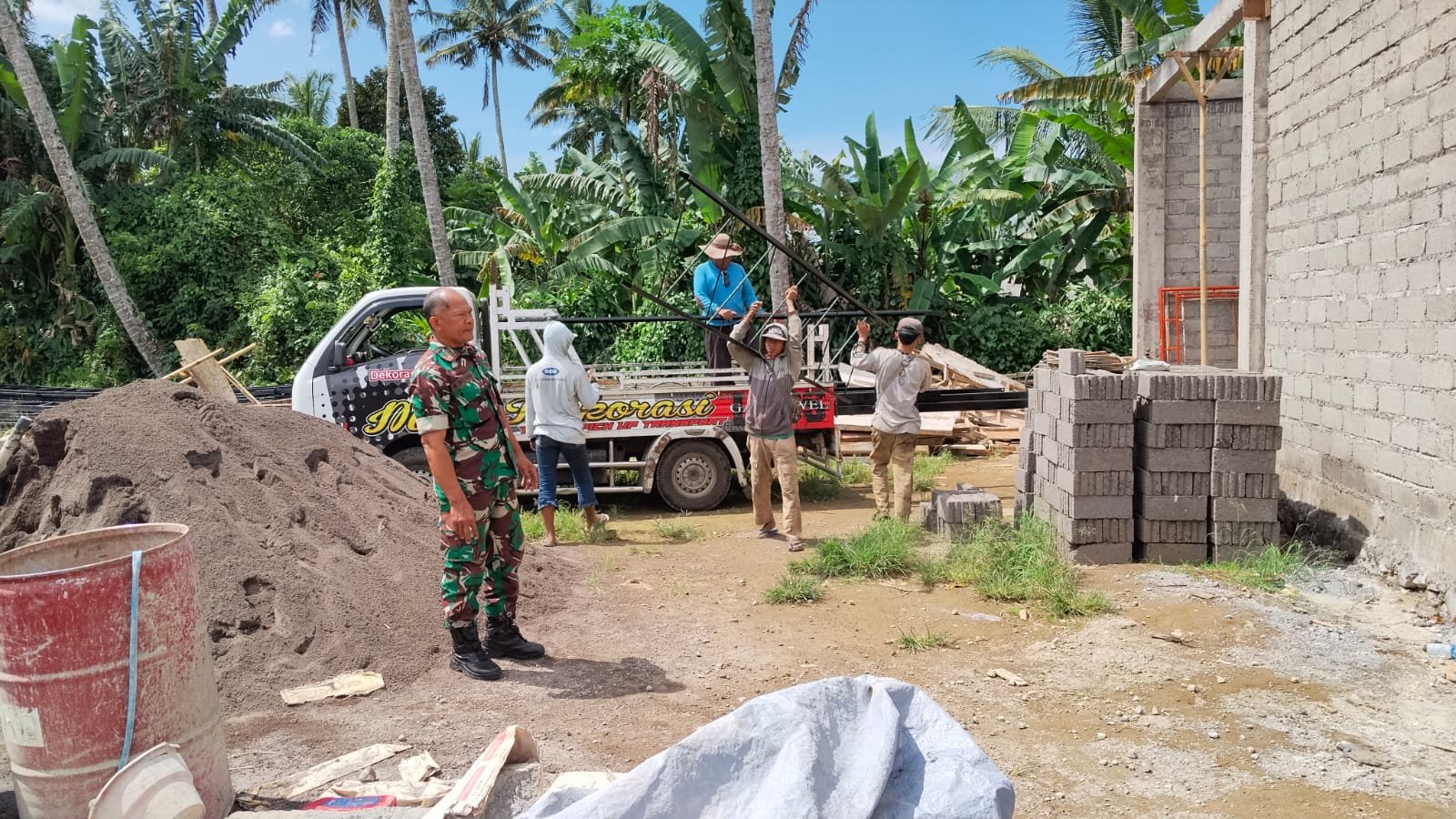 Selain itu, Danramil juga mengingatkan kepada para pekerja agar selalu memperhatikan faktor keselamatan kerja serta menjaga kualitas pekerjaan agar pembangunan dapat selesai tepat waktu dan hasilnya maksimal.