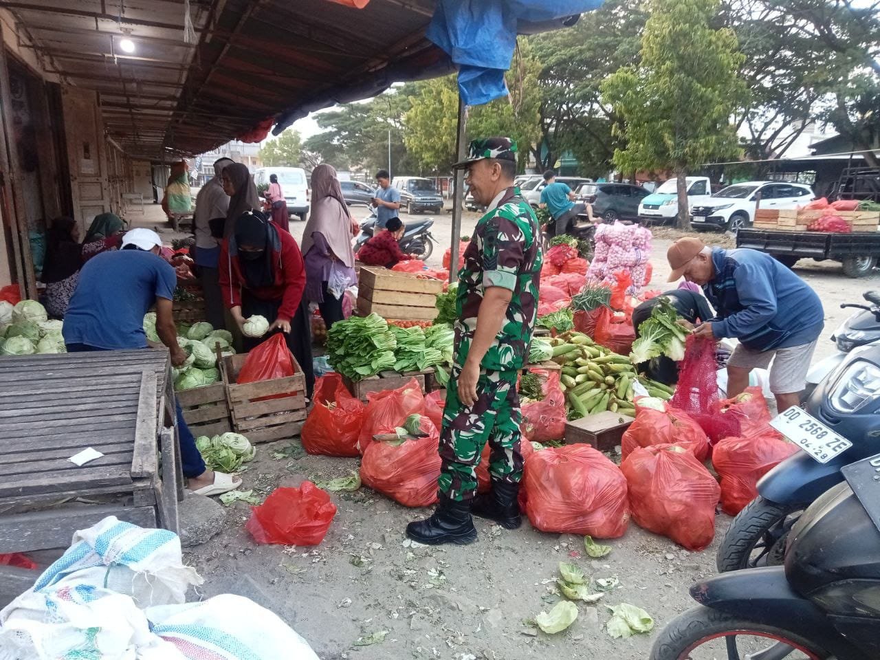 Pastikan Stabilitas Pangan, Babinsa Koramil 06/Panca Rijang Pantau Harga Sembako di Pasar Sentral Rappang