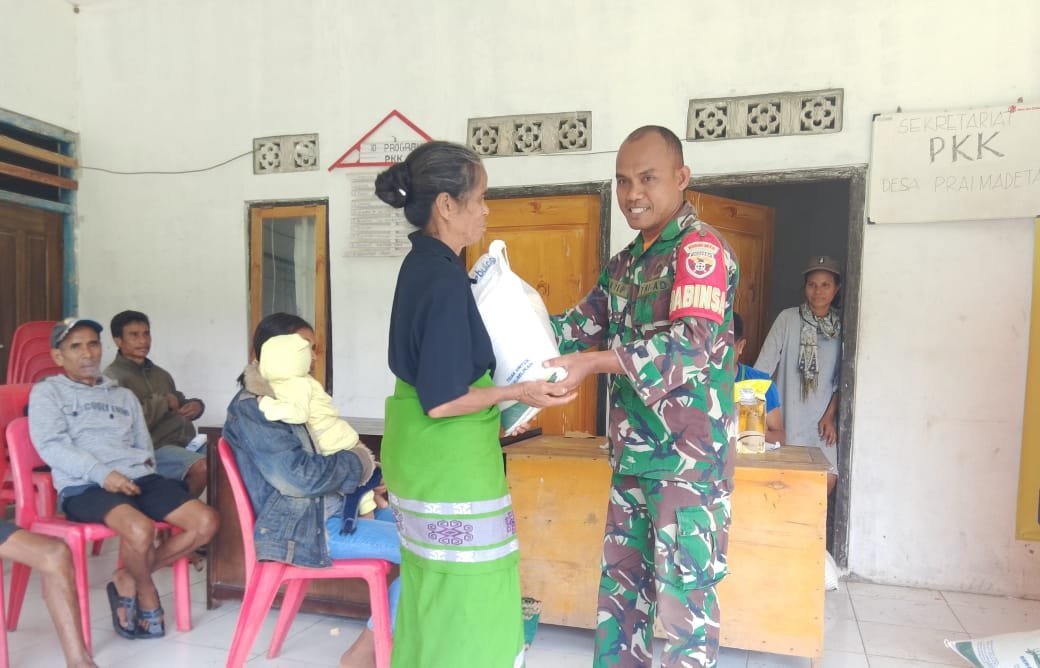 SUMBA TENGAH – Babinsa Sertu Latif anggota Koramil 1613-03/Katikutana melaksanakan pendampingan penyaluran bantuan sosial berupa beras dan minyak goreng kepada masyarakat di Desa Praimadeta, Kecamatan Umbu Ratu Nggay Barat, Kabupaten Sumba Tengah, Jumat (16/01/2026).