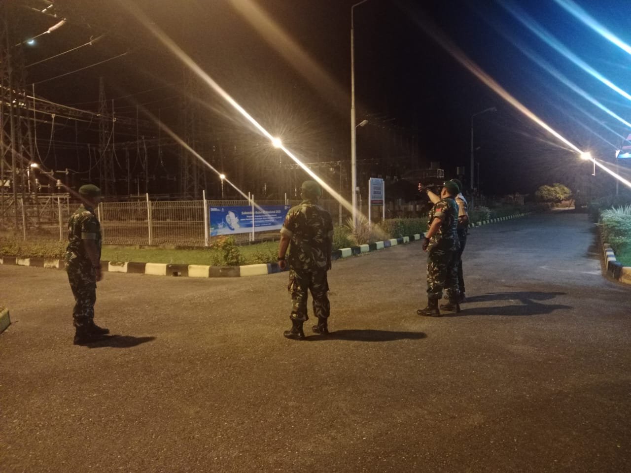 Dalam patroli rutin ini, petugas TNI melakukan pengecekan langsung terhadap kesiagaan personel keamanan yang berjaga, sekaligus memastikan pusat trafo listrik dan fasilitas pendukung lainnya dalam kondisi aman dari potensi sabotase maupun tindakan yang dapat mengganggu stabilitas.