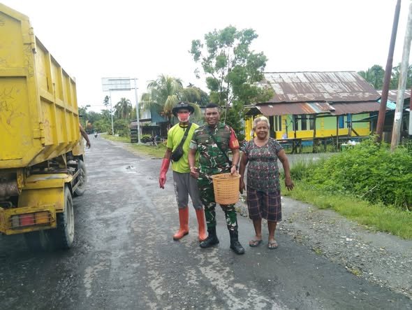Waropen – Dalam upaya menjaga kebersihan dan menciptakan lingkungan yang sehat, Babinsa Koramil 1709-03/Warbah, Serda Tuwuri Worabai melaksanakan kegiatan Karya Bakti (Karbak) pembersihan dan pengumpulan sampah bersama Dinas Lingkungan Hidup (DLH) Kabupaten Waropen, bertempat di sepanjang Jalan Kampung Uri hingga Pasar Kampung Uri, Distrik Waropen Bawah, Kabupaten Waropen, Sabtu (07/02/2026).