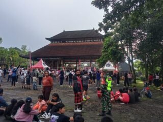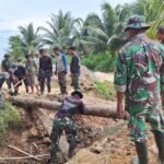 Personel Satgas TMMD mengerjakan pemasangan pembatas secara teliti agar menghasilkan konstruksi jalan yang berkualitas. Proses tersebut juga melibatkan masyarakat setempat sebagai bentuk gotong royong.