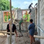 Personel Tentara Nasional Indonesia yang tergabung dalam Satgas TMMD bersama masyarakat terlihat kompak melaksanakan pembangunan rumah. Pekerjaan difokuskan pada pemasangan dinding, penyempurnaan rangka bangunan, serta penataan bagian dalam rumah agar segera dapat digunakan oleh penerima manfaat.