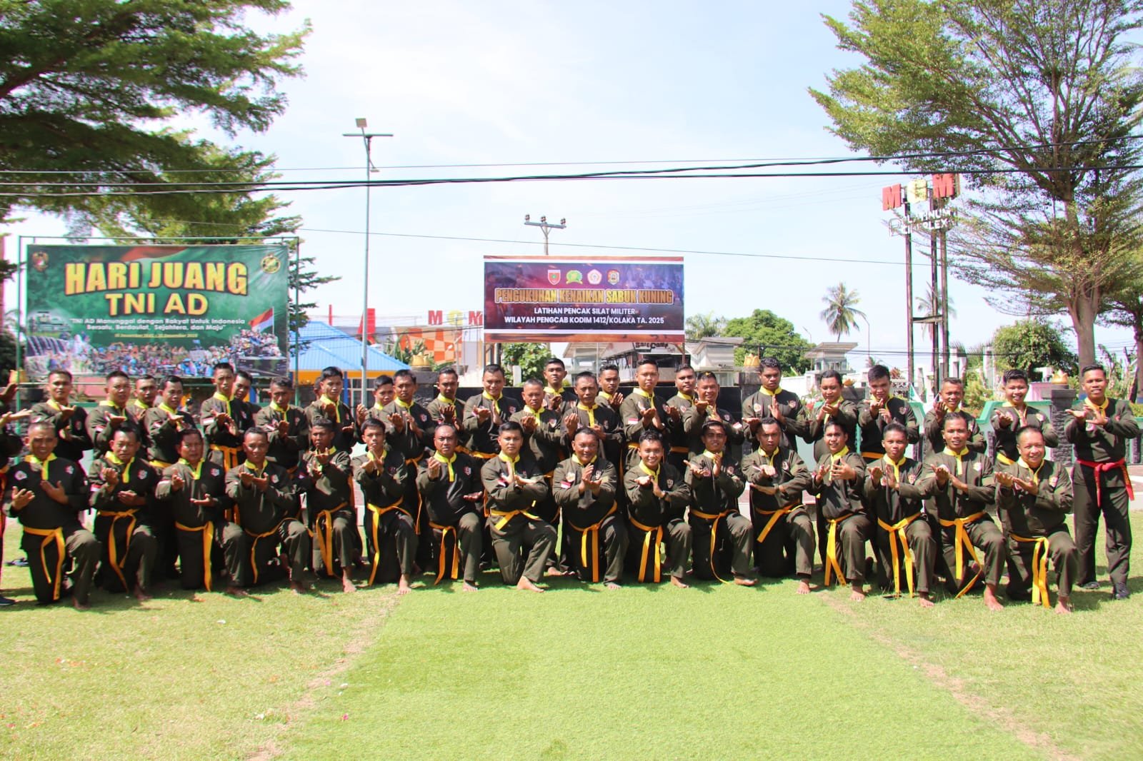 Kolaka – Sabtu (24/1/2026). Telah dilaksanakan kegiatan Pengukuhan Kenaikan Sabuk Kuning wilayah Pengurus Cabang (Pengcab) Kodim 1412/Kolaka sebagai bentuk pembinaan dan peningkatan kemampuan serta prestasi anggota dalam bidang bela diri.