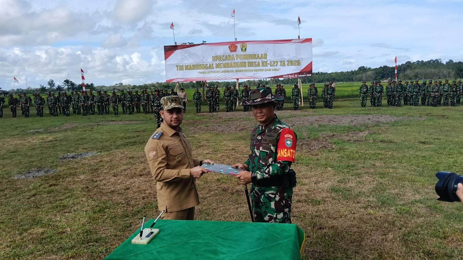 “Pelaksanaan TMMD ini akan digelar selama 30 hari ke depan, terhitung mulai tanggal 10 Februari sampai dengan 11 Maret 2026, bertempat di Desa Pasie Aceh, Kecamatan Woyla, Kabupaten Aceh Barat, dengan melibatkan unsur TNI sebanyak 124 orang, Polri 10 orang, Pemerintah Daerah Aceh Barat 16 orang, serta elemen masyarakat 30 orang setiap harinya,” lantang Pasiter.