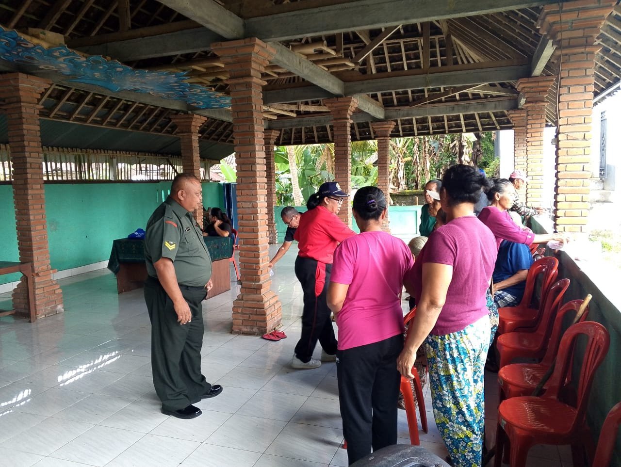 Klungkung,- Babinsa Bungbungan Sertu Nengah Karta bersinergi bersama Bhabinkamtibmas menghadiri sekaligus memberikan pengamanan kegiatan upacara keagamaan di wilayah binaannya, Kamis ( 10/07/25 ).