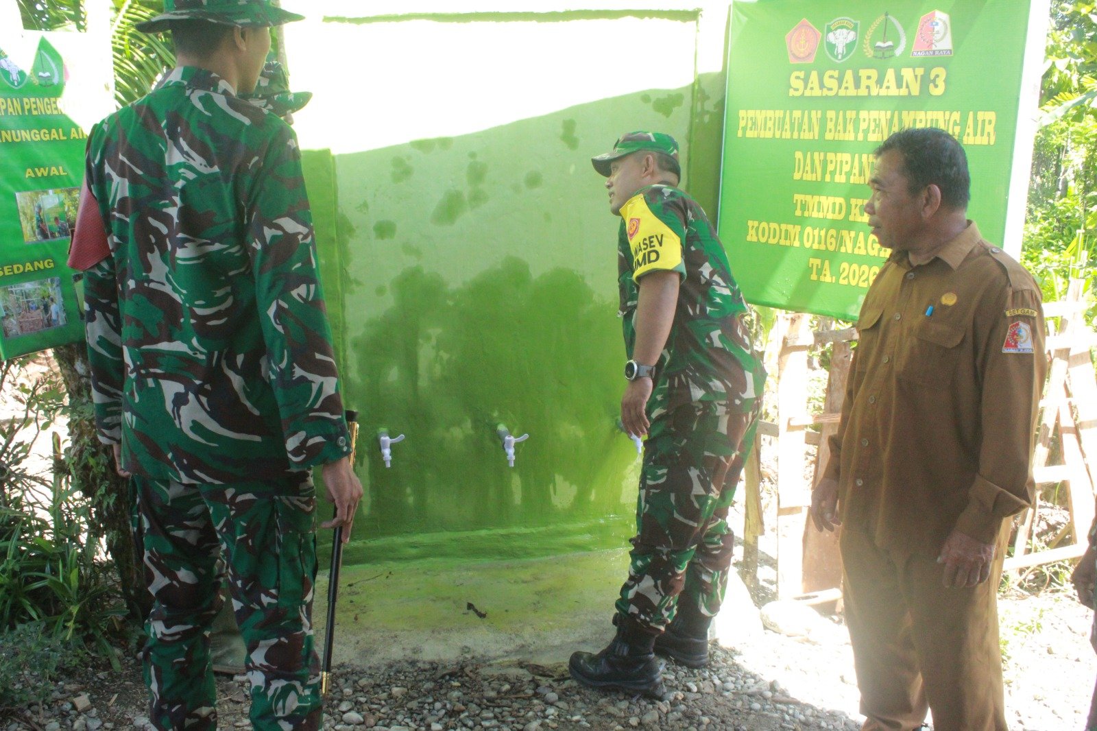 Kehadiran Tim Pengawasan dan Evaluasi (Wasev) dari Mabes TNI AD menjadi suntikan energi baru bagi personel Satgas TMMD yang tengah bekerja menyelesaikan berbagai sasaran pembangunan di desa. Dipimpin oleh Ketua Tim Wasev Kolonel Inf Ahmad Asiz, rombongan meninjau langsung salah satu sasaran penting program TMMD, yakni pembangunan bak penampungan air bersih yang merupakan bagian dari program TNI Manunggal Air Bersih (TMAB).