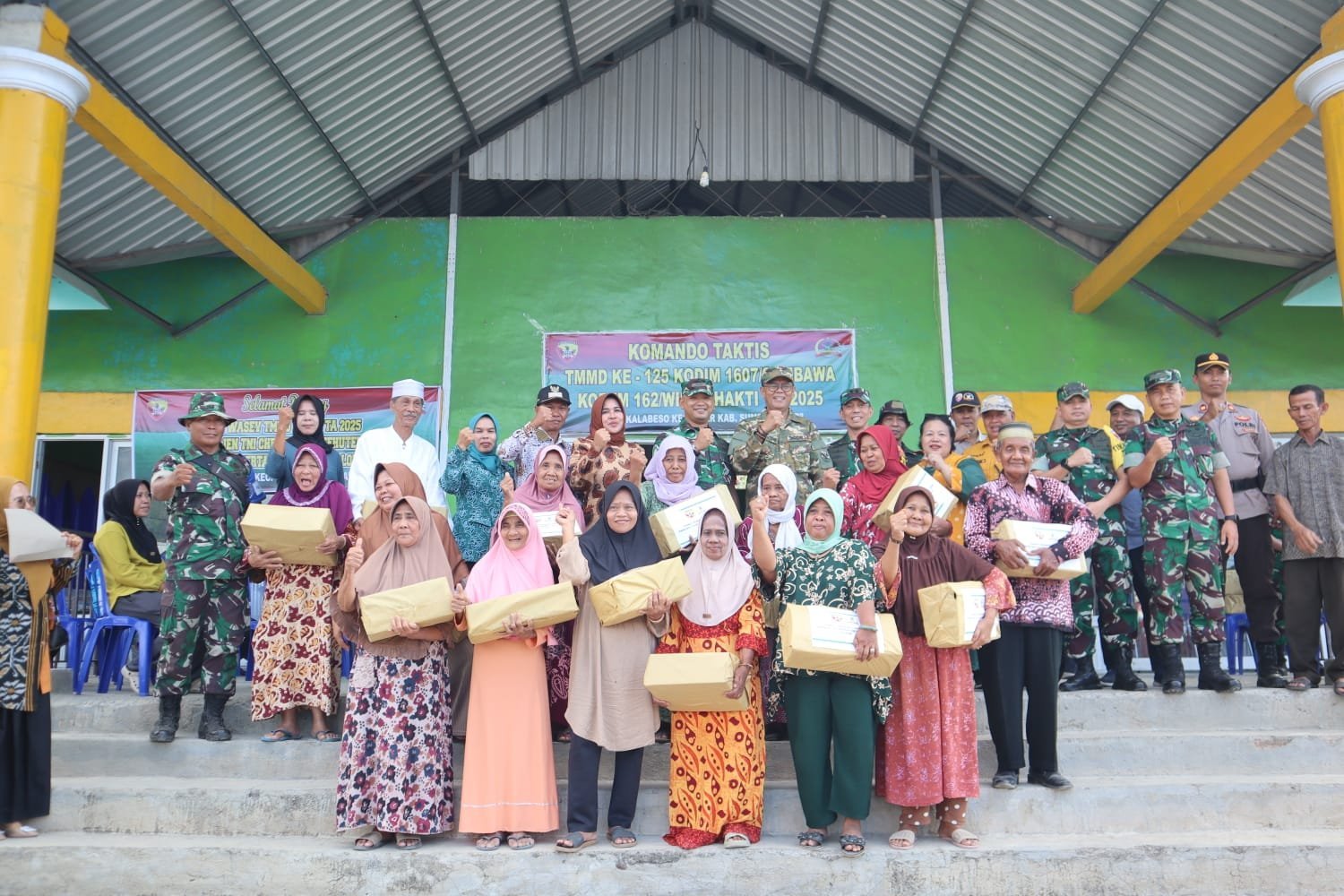 Untuk mengatasi medan sulit, anggota Satgas memanfaatkan tossa dan gerobak sederhana sebagai alat pengangkut coran ke lokasi pengecoran sumur. Kolaborasi antara Satgas dan masyarakat berjalan lancar, menandai semangat gotong royong yang kuat.
