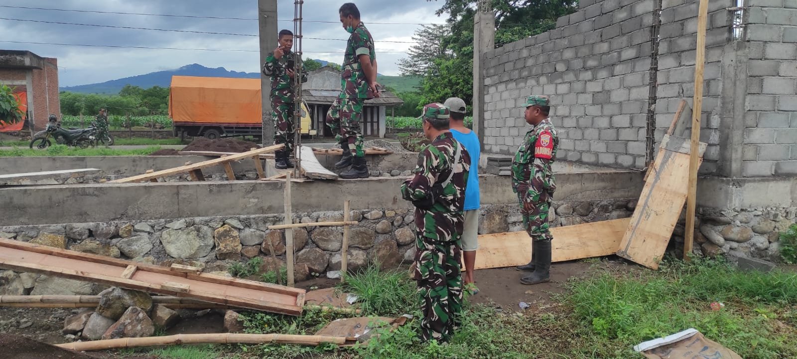 Dalam kesempatan tersebut, Pasi Ter Kodim 1614/Dompu menyampaikan arahan kepada seluruh pekerja agar mempercepat proses pekerjaan sehingga progres pembangunan dapat tercapai sesuai dengan waktu yang telah ditentukan.
