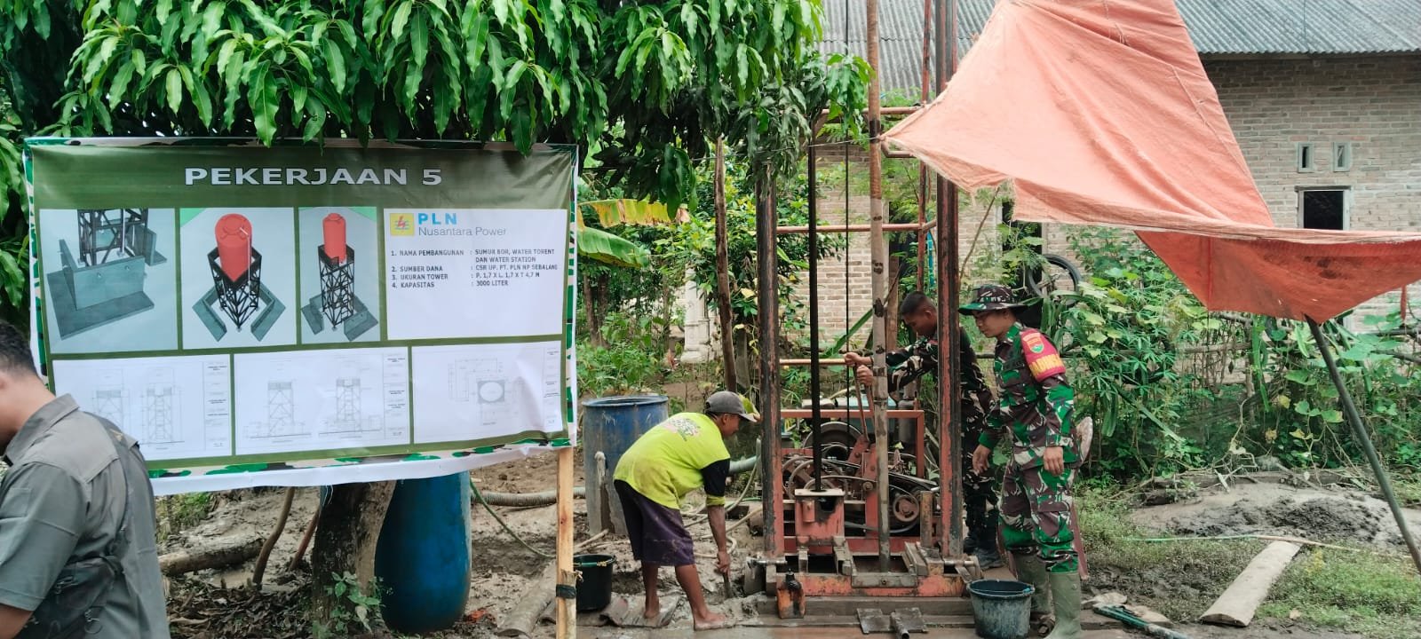 Pesawaran, Prov. Lampung – Pengeboran sumur bor di Desa Kubu Batu, a.n Bpk Jamingan, telah mencapai kedalaman 30 meter. Proses pengeboran ini merupakan bagian dari program TMMD ke-127 Kodim 0421/LS.