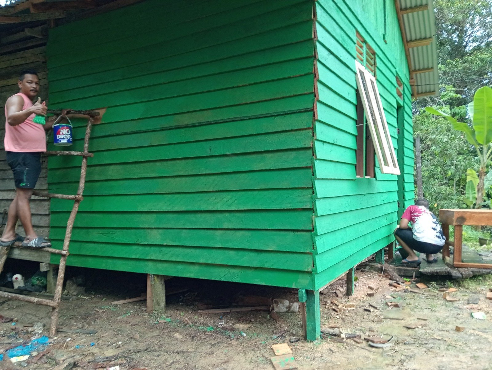 Proses pengerjaan dikerjakan secara gotong royong oleh anggota Satgas dan warga setempat. Mereka bahu-membahu memastikan setiap bagian rumah terlapisi cat dengan rata dan rapi, agar hasil akhir maksimal.