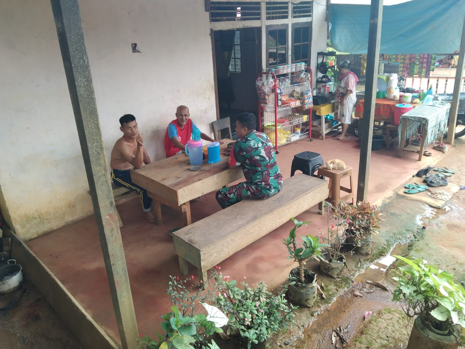 Bapak Markus selaku tuan rumah menyambut positif kehadiran Babinsa. Ia mengaku senang dengan aktifnya aparat TNI yang mau berkunjung dan berdialog langsung dengan warga, sehingga masyarakat merasa lebih dekat dan tidak sungkan dalam menjalin koordinasi terkait keamanan maupun pembangunan desa.(1203).