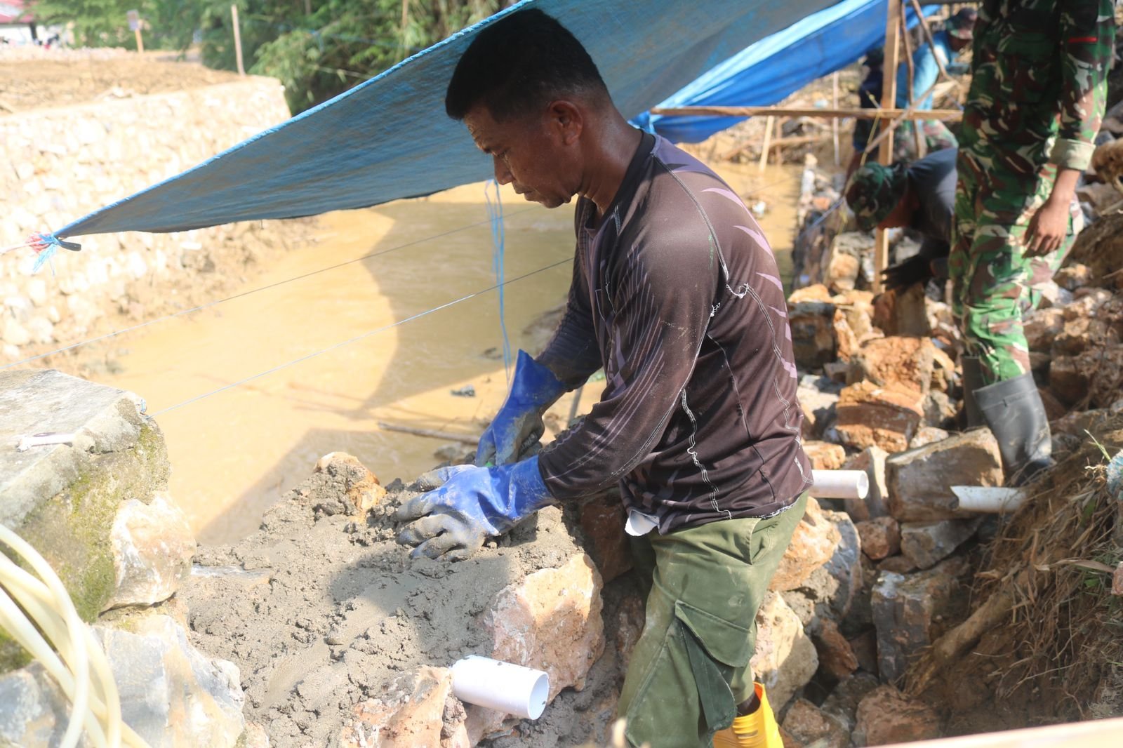 Dan SSK Kapten Inf Taslim menjelaskan bahwa keberadaan pipa pembuangan air sangat menentukan kekuatan dan ketahanan talud dalam jangka panjang, khususnya saat curah hujan tinggi melanda wilayah tersebut.