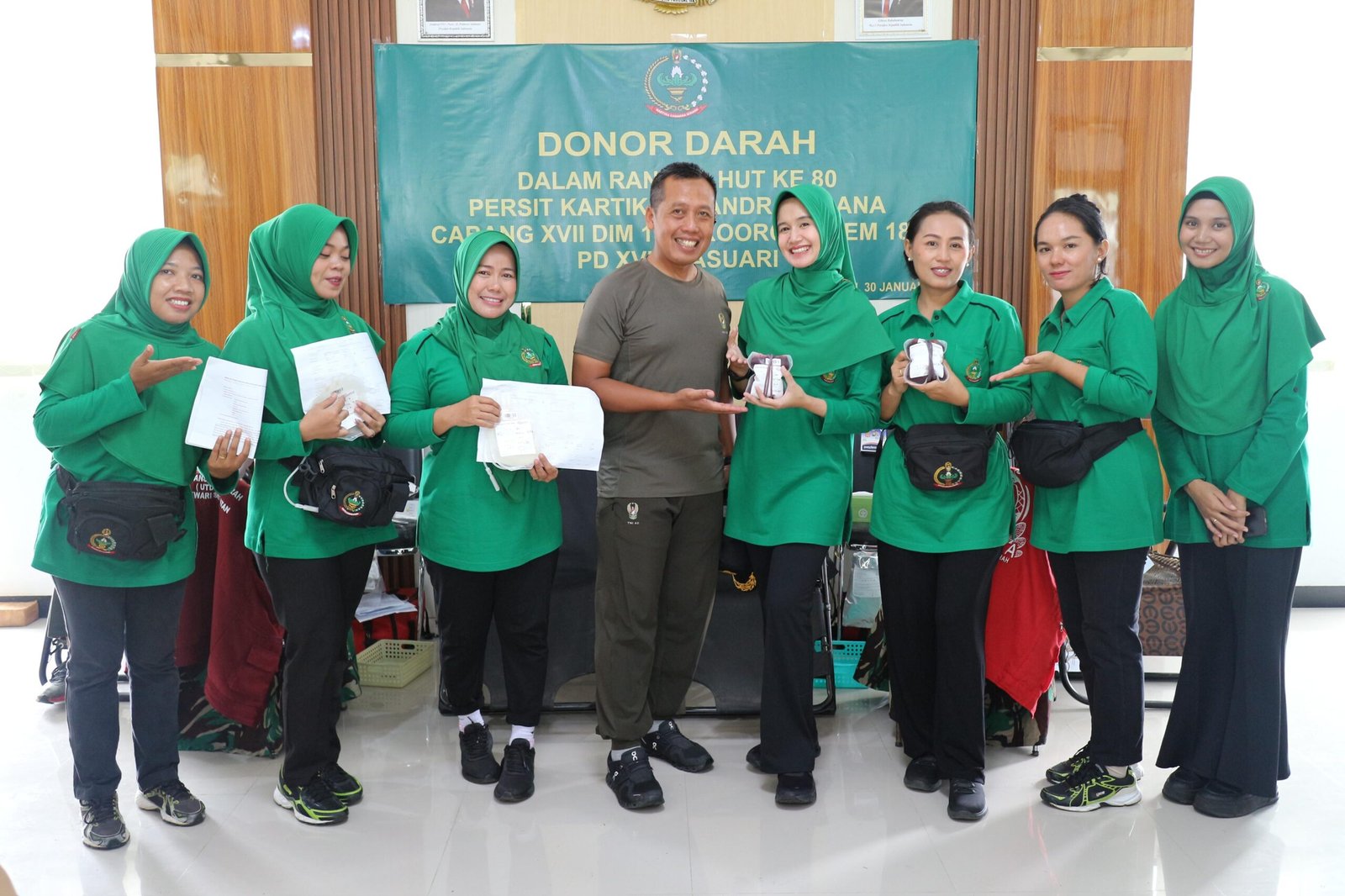 MANOKWARI SELATAN – Dalam rangka menyambut Hari Ulang Tahun ke-80 Persit Kartika Chandra Kirana, Cabang XVII Dim 1808 Koorcab Rem 182 PD XVIII/Kasuari menggelar aksi sosial donor darah. Kegiatan ini berlangsung di Makodim 1808/Mansel, Jalan Trans Manokwari Bintuni, Distrik Ransiki, Kabupaten Manokwari Selatan, Provinsi Papua Barat, pada Jumat (30/1/2026).