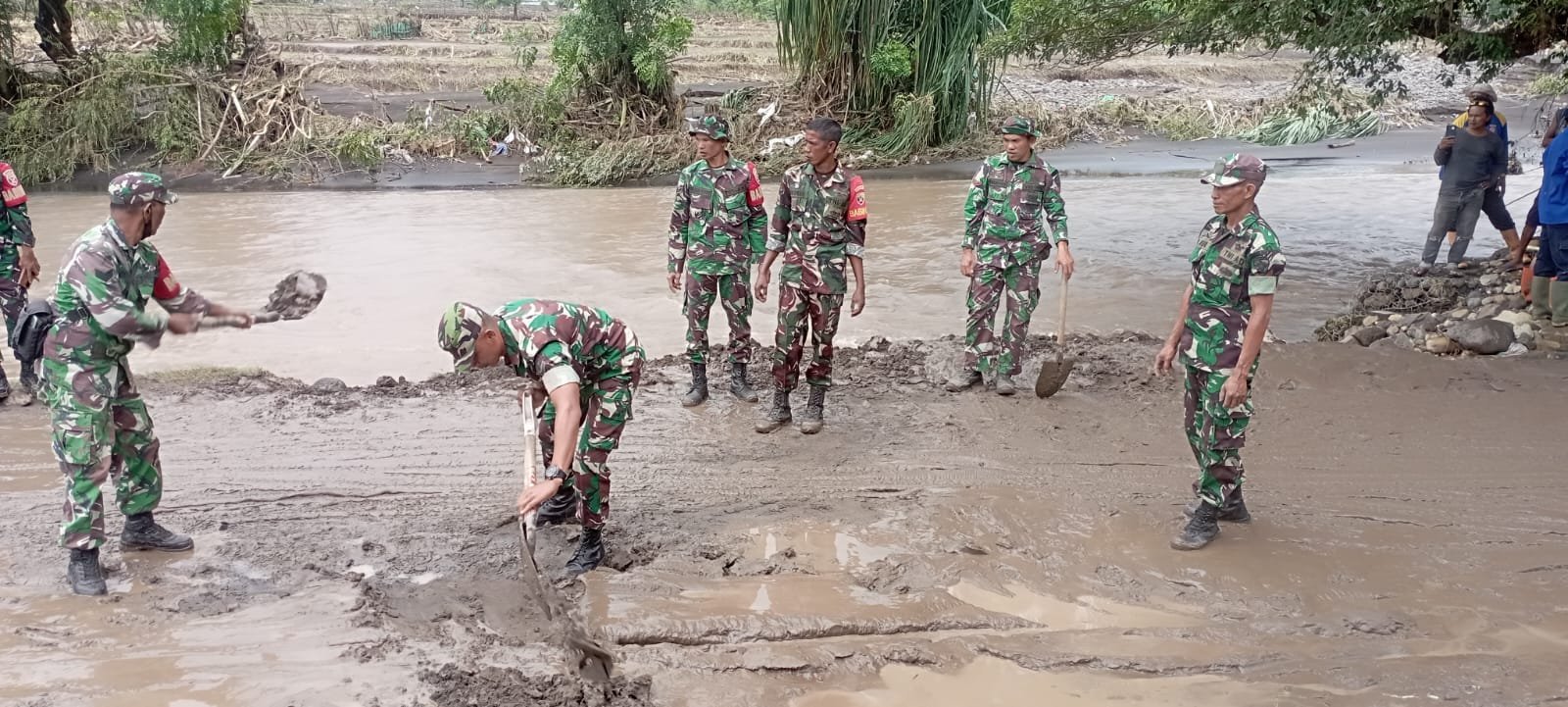 Wera, 3 Februari 2025 – Personel Posramil Ambalawi, Koramil 1608-06/Wawo, berjibaku untuk Bersihkan material jalur lintas Wera-Sape yang terputus akibat banjir bandang yang melanda wilayah tersebut pada hari kemarin. Dengan kondisi medan yang berat dan banjir yang merendam beberapa titik jalan, anggota TNI melakukan pembersihan material dan evakuasi untuk memastikan akses transportasi tetap terbuka dan aman bagi masyarakat yang hendak melintas. Selain itu, mereka juga memberikan bantuan kepada warga terdampak banjir dan melakukan pemulihan terhadap infrastruktur yang rusak.
