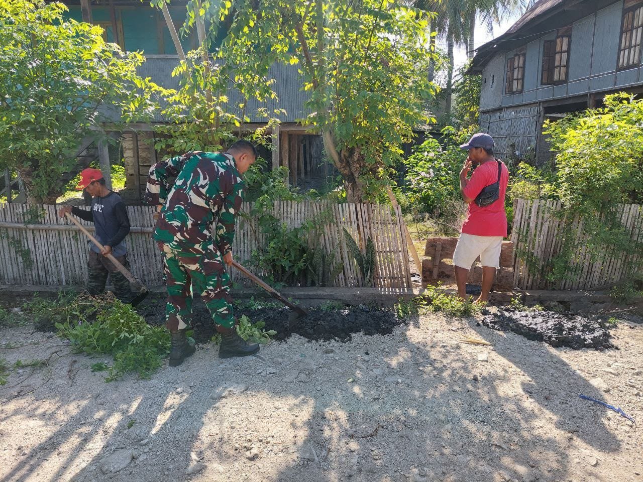 Kegiatan yang bertujuan untuk meningkatkan kebersihan dan kesehatan lingkungan pemukiman ini mencakup pembersihan sampah, pembuangan limbah yang menumpuk, serta penataan area sekitar rumah warga. Kolaborasi ini menjadi bentuk dukungan aktif dari Koramil terhadap upaya pemerintah daerah dalam menjaga kebersihan lingkungan dan menciptakan kondisi tinggal yang nyaman bagi seluruh warga.