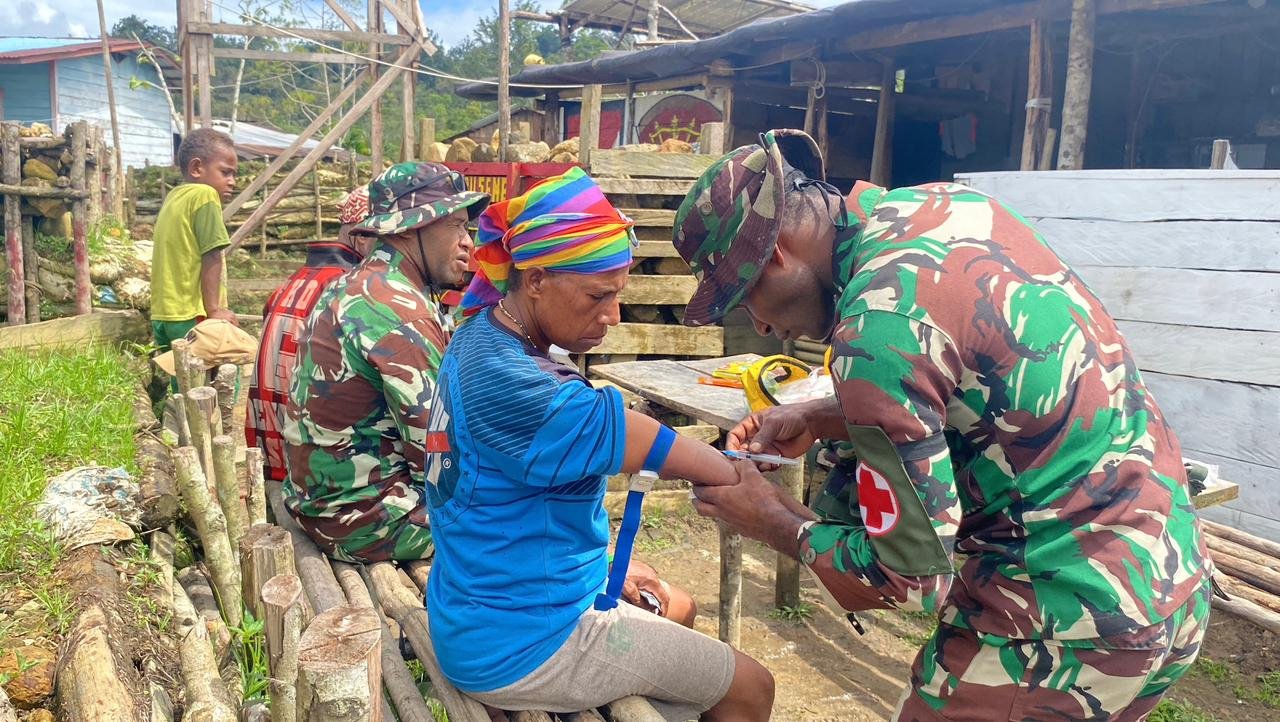 Pos Denom Yonif 751/VJS Berikan Pelayanan Kesehatan dan Suntik Vitamin bagi Warga Atukbin