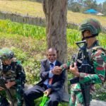 LANNY JAYA – Satgas Yonif 614/RJP Pos Malagayneri bersama masyarakat bergotong royong membersihkan gereja Bahtera Lowanom yang akan digunakan untuk ibadah Hari Minggu di Kampung Lowanom, Distrik Malagayneri, Kabupaten Lanny Jaya, Papua Pegunungan, Sabtu (10/5/2025).