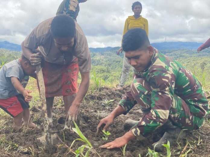 Parim, Pegunungan Bintang — Pos Parim Satgas Yonif 751/Vira Jaya Sakti (VJS) melaksanakan kegiatan anjangsana ke Kampung Kakopom dengan memberikan edukasi kepada masyarakat tentang penanaman bibit kopi. Kegiatan ini menjadi salah satu bentuk kepedulian TNI dalam mendorong pemanfaatan potensi lahan dan meningkatkan kesejahteraan masyarakat di wilayah perbatasan. (Rabu, 15/4/2026).