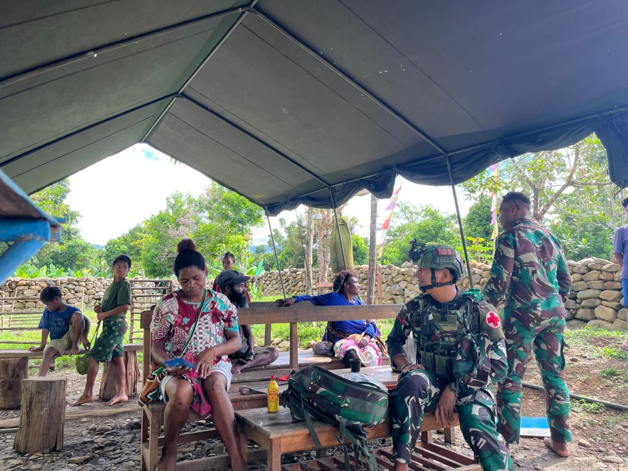Selal, Pegunungan Bintang — Pos Selal Satgas Swasembada Yonif 751/Vira Jaya Sakti (VJS) melaksanakan pelayanan pengobatan gratis bagi masyarakat Kampung Beringin dan Kampung Dipol yang datang ke pos dengan berbagai keluhan kesehatan. Kegiatan ini merupakan wujud kepedulian TNI dalam mendekatkan layanan kesehatan dasar bagi warga perbatasan yang terkendala akses menuju fasilitas kesehatan. (Kamis,19/3/2026).