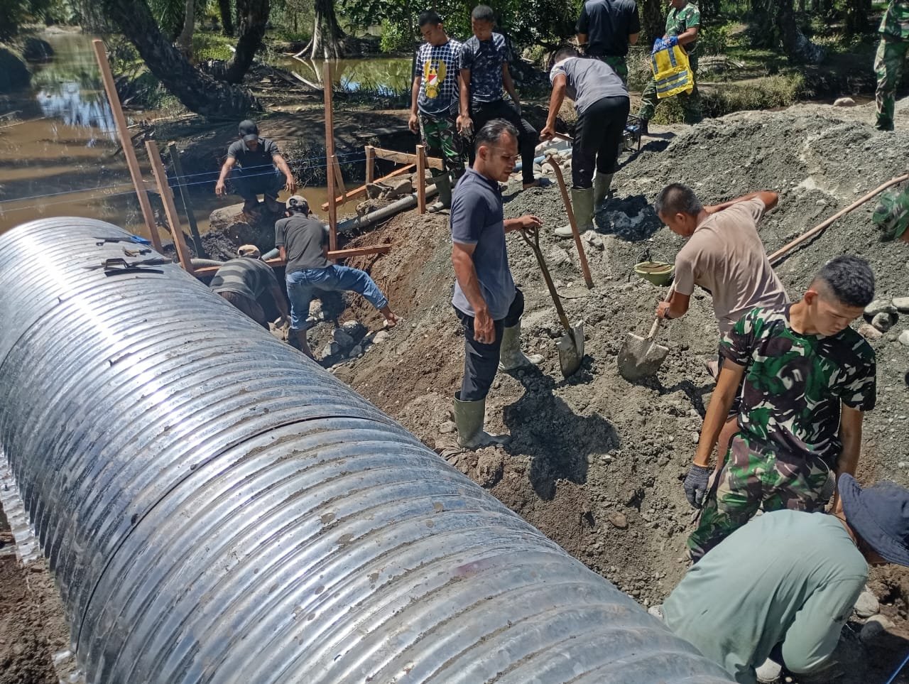 Nagan Raya – Dalam upaya mendukung percepatan pembangunan infrastruktur serta meningkatkan aksesibilitas masyarakat, Kodim 0116/Nagan Raya mengerahkan personel TNI untuk melaksanakan kegiatan pengecoran di Areal Jembatan Aramco, tepatnya di Desa Kuala Tripa Kecamatan Tripa Makmur Kabupaten Nagan Raya Sabtu 04 April 2026.