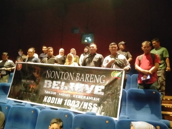 HULU SUNGAI SELATAN – Keluarga Besar Kodim 1003/Hulu Sungai Selatan (HSS) secara bergiliran sesuai jadwal yang telah ditentukan telah mendapat kesempatan untuk menikmati Film laga epik “BELIEVE” Takdir, Mimpi, dan Keberanian. Yang diangkat dari kisah nyata dalam buku biografi Believe Faith, Dream, and Courage, film ini menyatukan semangat patriotisme, pengorbanan, keimanan, dan keberanian dalam satu sajian sinematik yang menggugah. Jumat (4/7/25) Sore waktu setempat