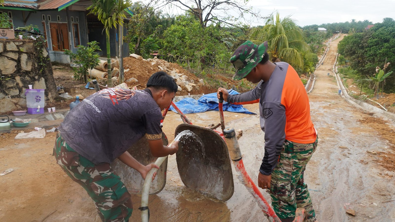 Setelah seharian berjibaku membangun siring badan jalan, para prajurit tidak langsung beristirahat. Mereka terlebih dahulu mencuci dan merapikan peralatan agar tetap dalam kondisi prima.