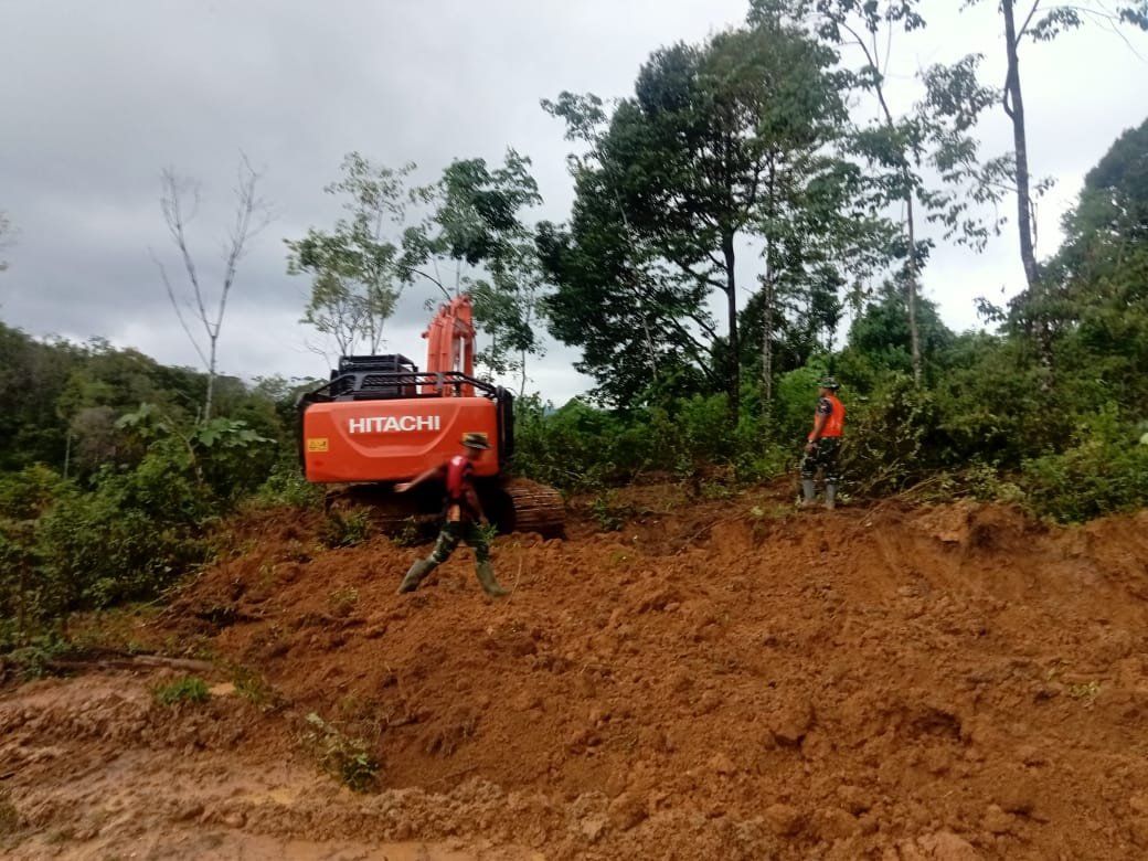 Dansatgas TMMD Letkol Inf Irfan Hade Fitrianto menjelaskan, Kamis (12/2/2026), pembangunan badan jalan sepanjang 3.100 meter dikerjakan menggunakan alat berat guna mempercepat pembukaan akses antar desa.