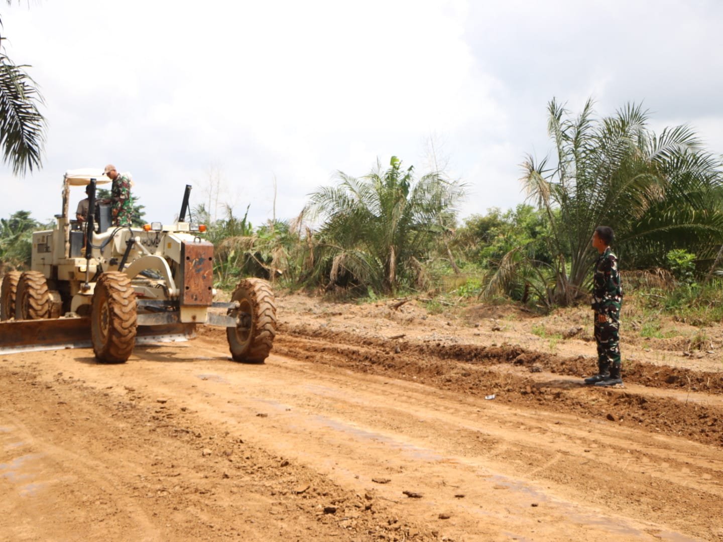 Banyuasin – Pengerjaan jalan penghubung Wonosari–Rukun Makmur oleh Satgas TMMD ke-127 dari Kodim 0430/BA di Kecamatan Pulau Rimau menunjukkan perkembangan signifikan dengan capaian 50 persen.