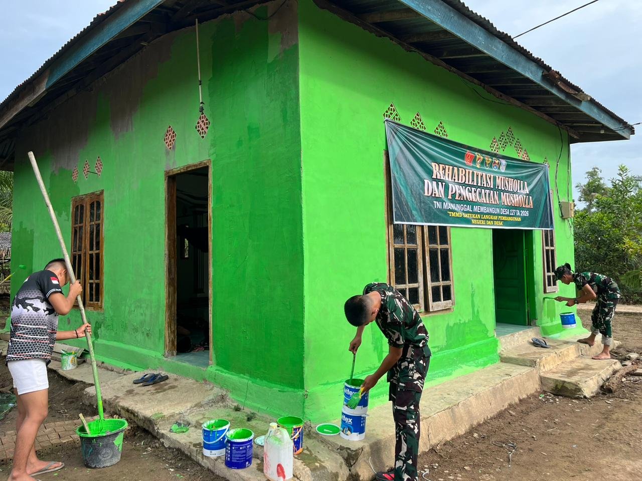 Banyuasin, 28 Februari 2026 – Program TMMD ke-127 yang dilaksanakan oleh Kodim 0430/BA terus menunjukkan hasil signifikan. Salah satu sasaran fisik yang kini dikebut adalah rehabilitasi Mushola Nurul Iman di Jalur 12, Desa Wonosari, Kecamatan Pulau Rimau.