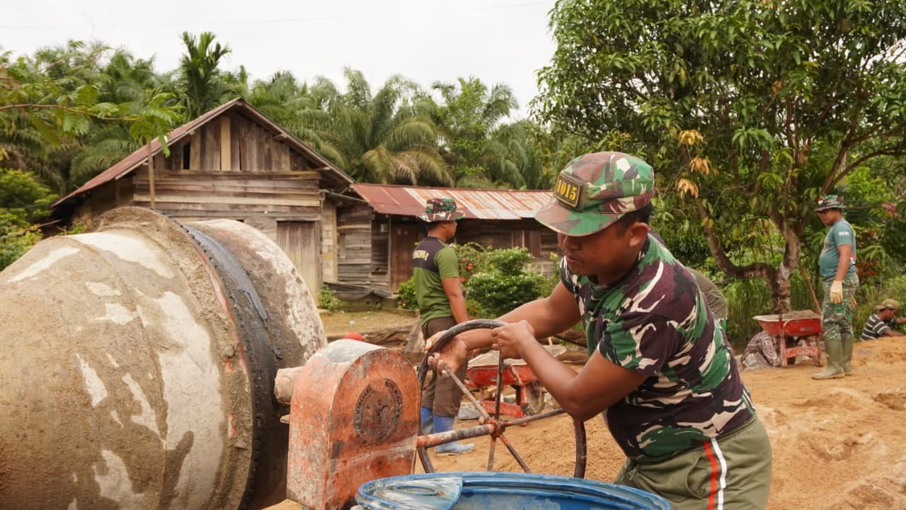 Ia menambahkan, putaran mesin molen seolah menjadi penyemangat tersendiri bagi personel Satgas dan warga yang terlibat dalam pembangunan. Dengan dukungan alat tersebut, pekerjaan diharapkan dapat selesai sesuai target waktu yang telah direncanakan.