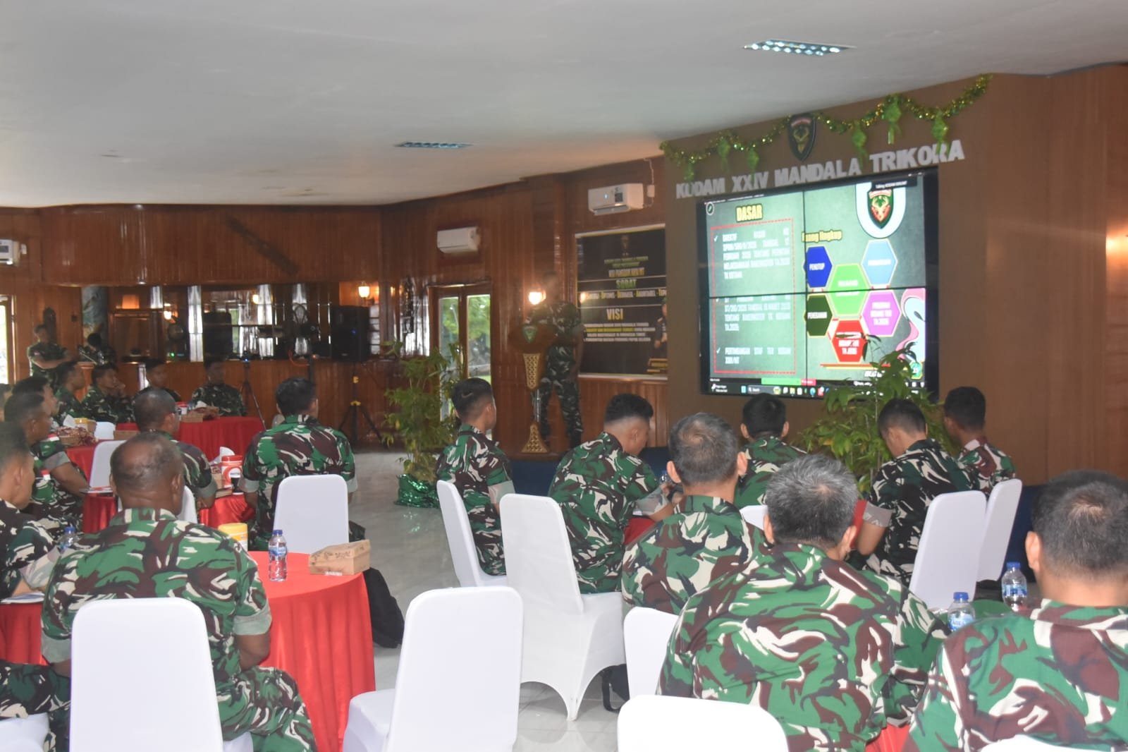 Merauke – Asisten Teritorial (Aster) Kasdam XXIV/Mandala Trikora, Kolonel Kav Agung Nur Cahyono, S.I.P., M.Tr (Han) memimpin pelaksanaan Rapat Kerja Teknis Teritorial (Rakernister) Tahun Anggaran 2026 yang digelar di Ruang Rapat Trikora, Makodam XXIV/MT, Papua Selatan, Kamis (26/3/2026).