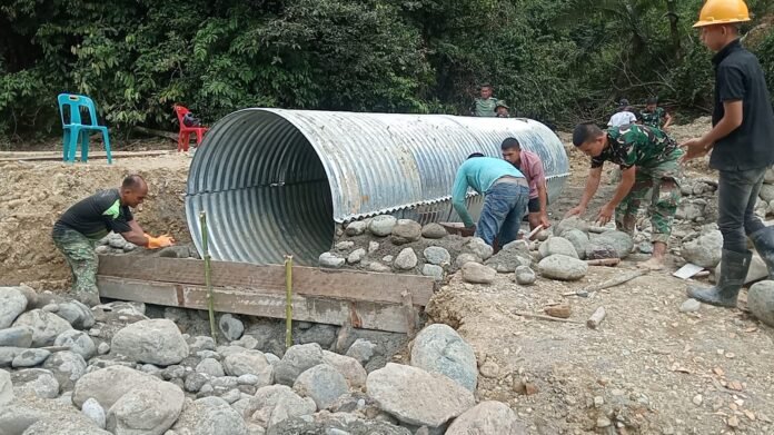 Satgas Kodim 0105/Abar Pacu Pembangunan Infrastruktur Desa