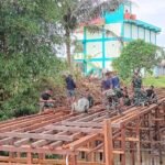 Rumah yang sudah puluhan tahun berdiri ini tampak mulai dibongkar oleh anggota TNI bersama warga setempat. Kayu-kayu tua yang sudah lapuk dan atap seng yang bocor kini mulai dilepas untuk proses pembangunan ulang.