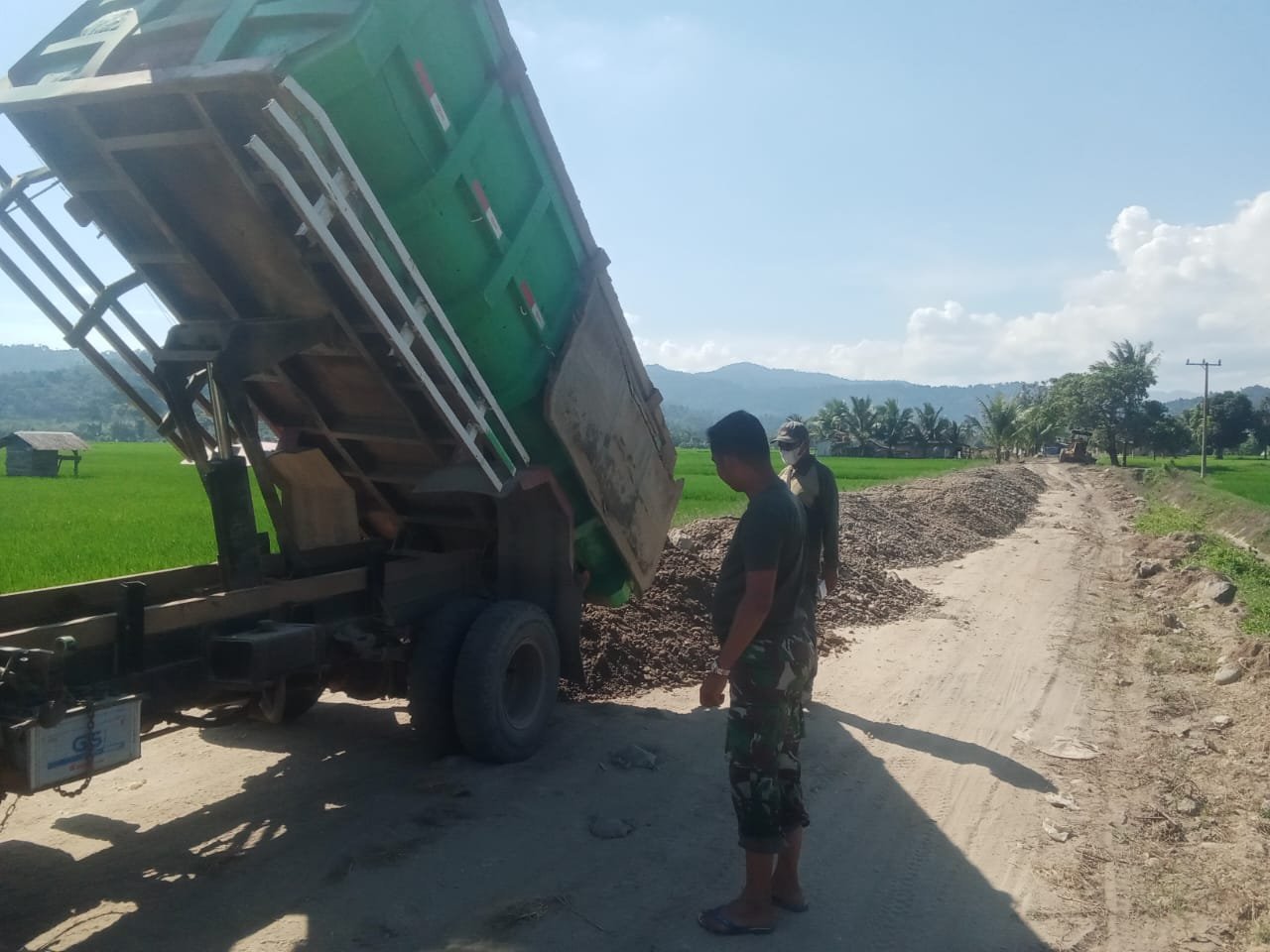 Konawe – Gema suara mesin dan alat berat terdengar di udara, ban truk terus berputar memecah angin siang hari dalam proses penimbunan jalan di Kecamatan Asinua, Kamis (14/8/2025). Di tengah teriknya matahari, anggota Satgas TMMD 125 Kodim 1417/Kendari bersama warga tetap bersemangat bekerja.