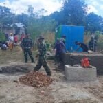 Satgas dan warga saling bahu membahu mengangkut material seperti batu, pasir, dan semen ke lokasi pembangunan. Mereka juga bekerja sama dalam proses pemasangan rangka serta pengecoran bagian dasar jembatan.